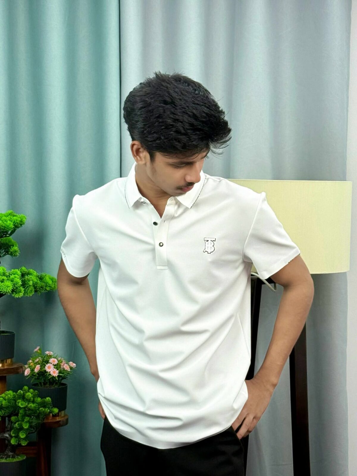 Button-Down Placket with subtle Burberry signature check trimming on the inside collar for a touch of luxury.