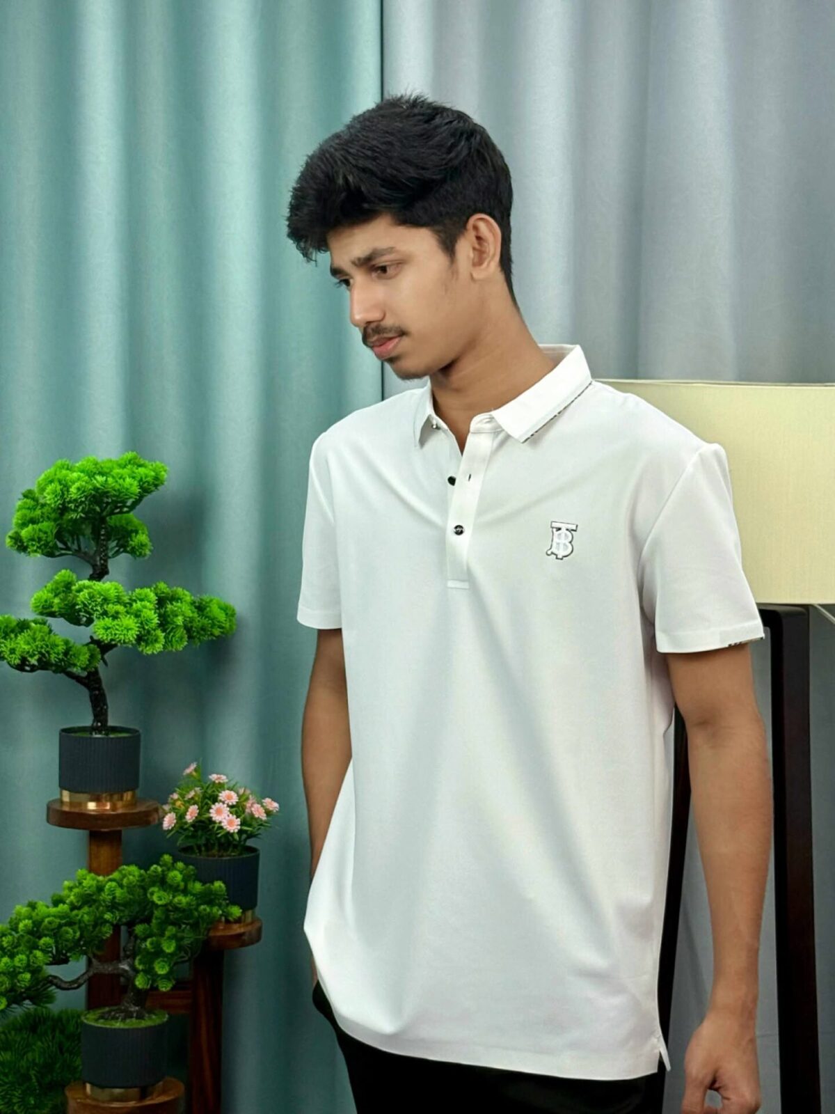 Button-Down Placket with subtle Burberry signature check trimming on the inside collar for a touch of luxury.
