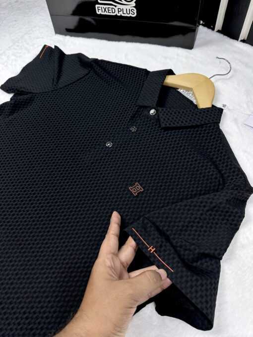 Fabric: Textured Premium Cotton (100%) with a woven micro-geometric pattern that not only adds depth to the design but also enhances breathability.