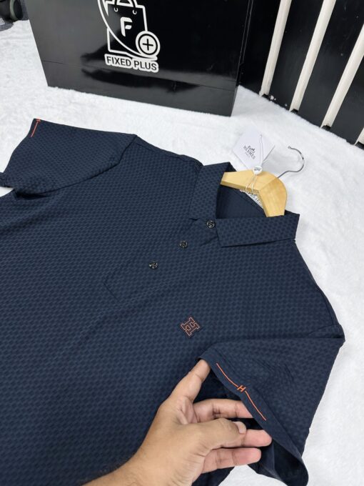 Hermès Navy Blue Pattern Polo Shirt