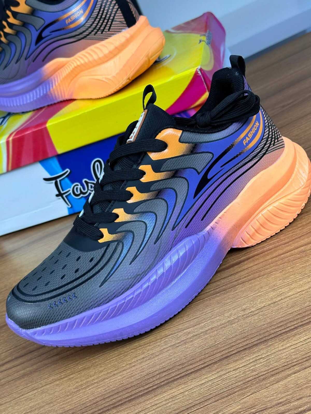 The AeroFlex Runner Pro – Purple Orange Gradient Edition stands out with its bold color fusion and ultra-modern sole design. Built for comfort lovers who want style with performance.