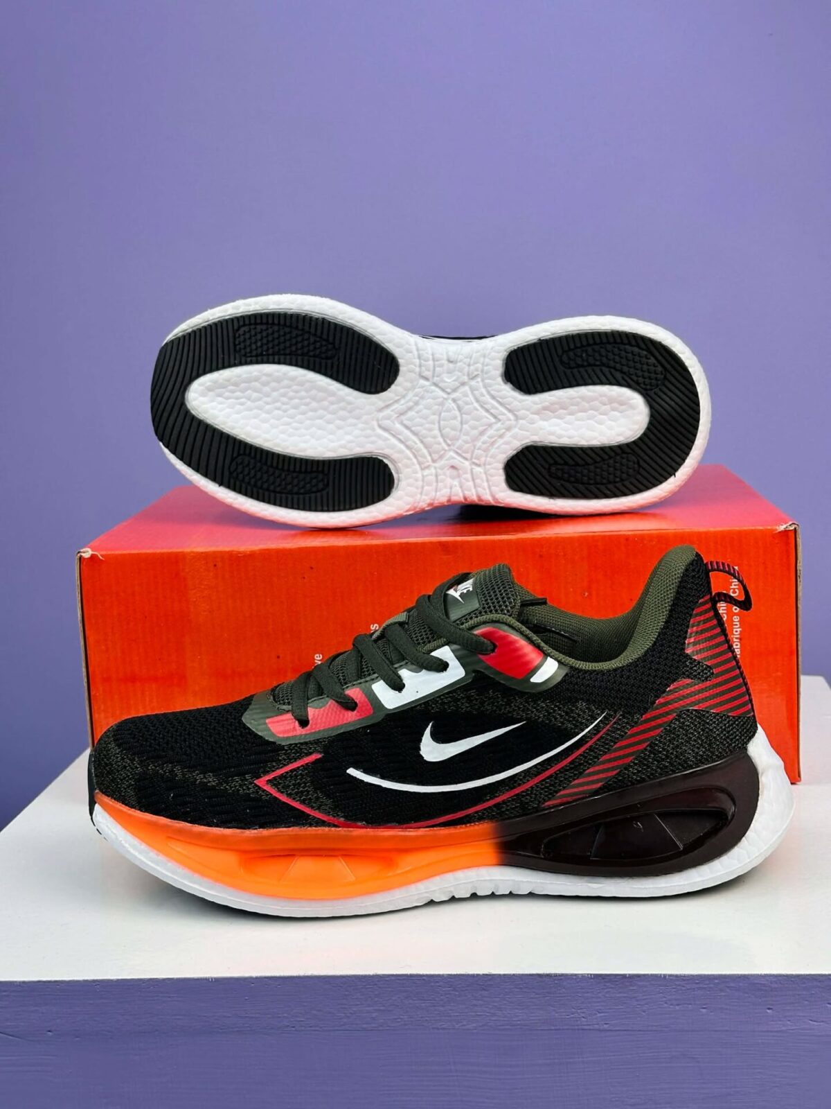 Unleash your speed and confidence with the AeroMax Air Glide – Black Fire Edition. Designed for those who love bold streetwear and comfort, this sneaker combines advanced air-cushion technology with a lightweight, breathable mesh upper. The dynamic color blend of black, red, and orange adds a fiery edge to your look, while the soft foam midsole ensures unbeatable comfort all day long.