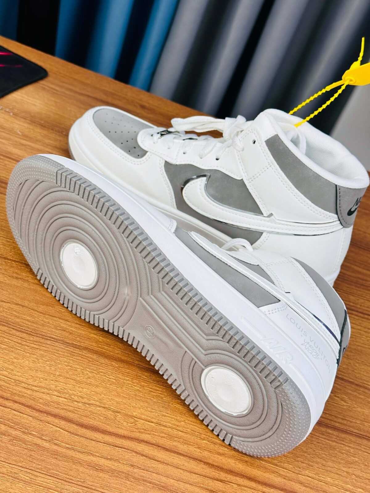 The Air Royale Fusion Mid features a bold LV-inspired luxury aesthetic blended with the iconic Air–inspired street silhouette. This hybrid design delivers a modern, premium look while maintaining everyday comfort and durability. Perfect for casual wear, street style, and fashion-forward outfits.C