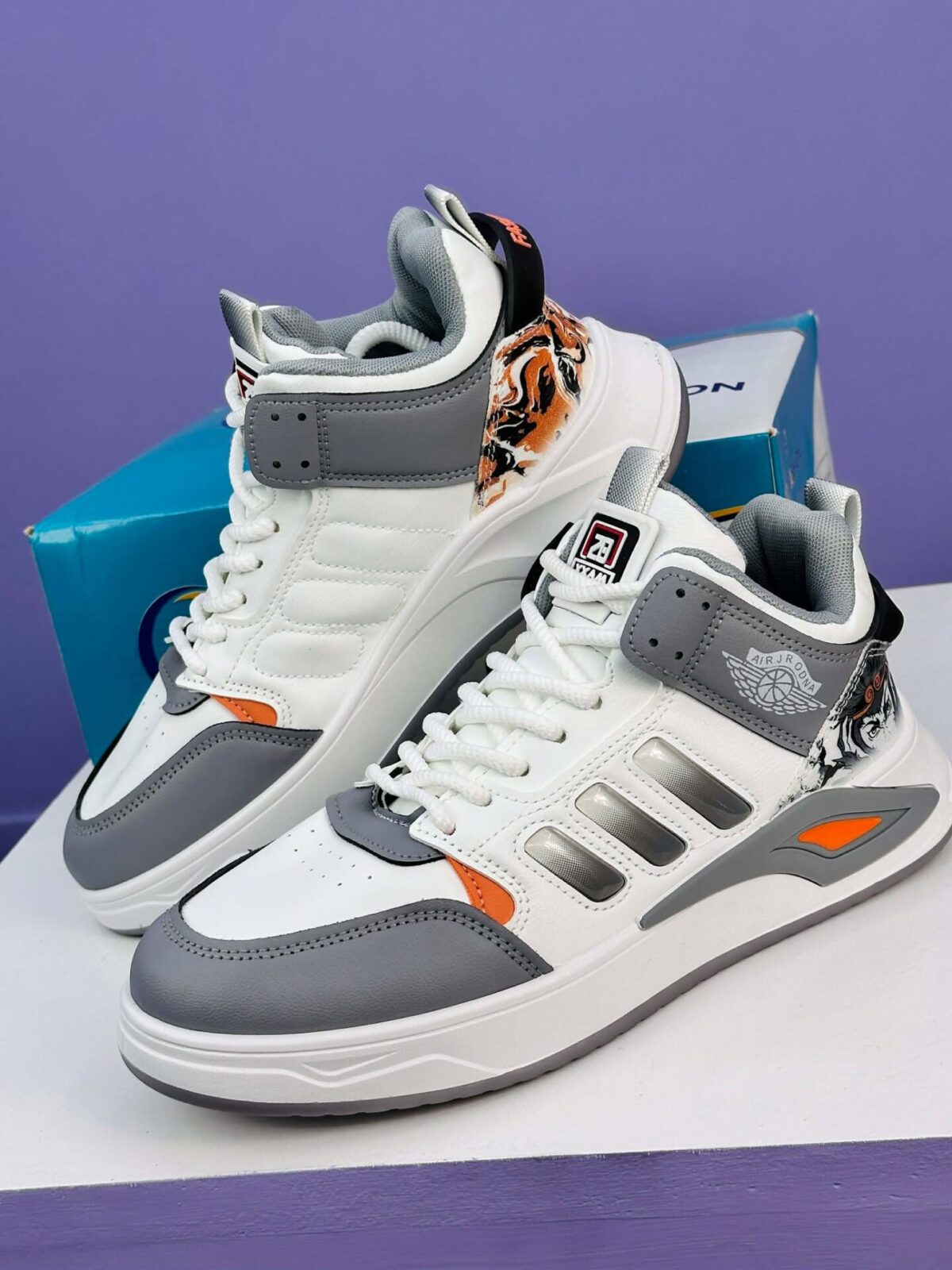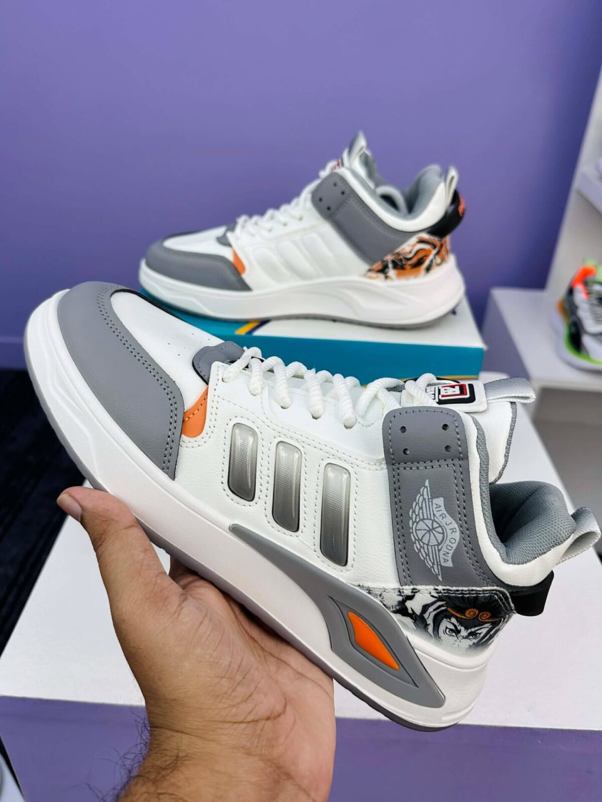 The AirZoom Shadow Runner – Grey Edition is a stylish everyday sneaker designed for comfort, durability, and a bold streetwear look. With its clean white base, modern grey overlays, and vibrant orange detailing, this pair brings a fresh and sporty vibe to any outfit