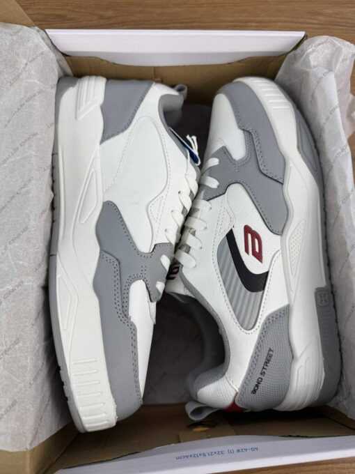 Color: White base with Grey overlays & Red logo detailing Ash sole