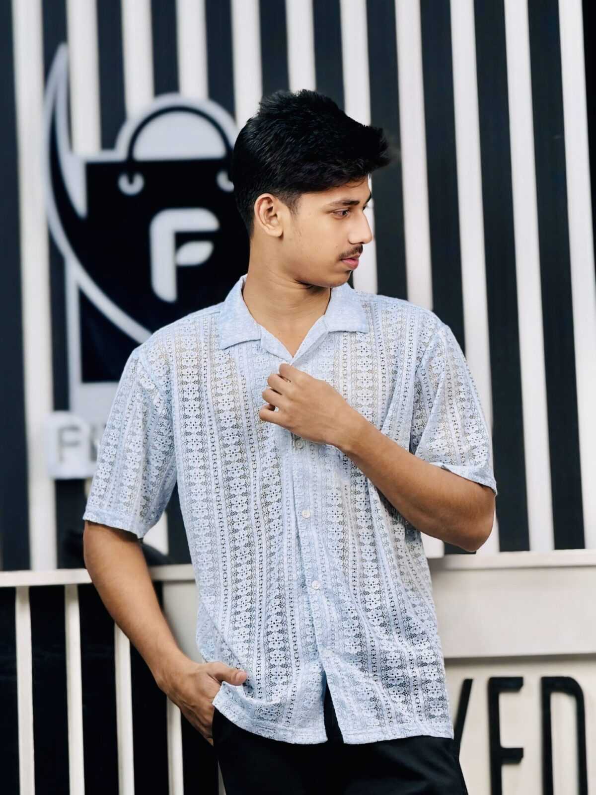 Elevate your summer style with the Breeze Lace Drop-Shoulder Shirt, designed for both comfort and sophistication. Crafted from premium lightweight lace fabric, this shirt offers a breathable and airy feel 🌿, perfect for warm weather ☀️. Its relaxed drop-shoulder design ensures a modern, laid-back look, while the delicate embroidery-inspired lace pattern adds a touch of elegance 🌸. The soft pastel blue color enhances its refreshing vibe, making it a versatile choice for casual outings 🎉 or semi-formal gatherings 🍸.
