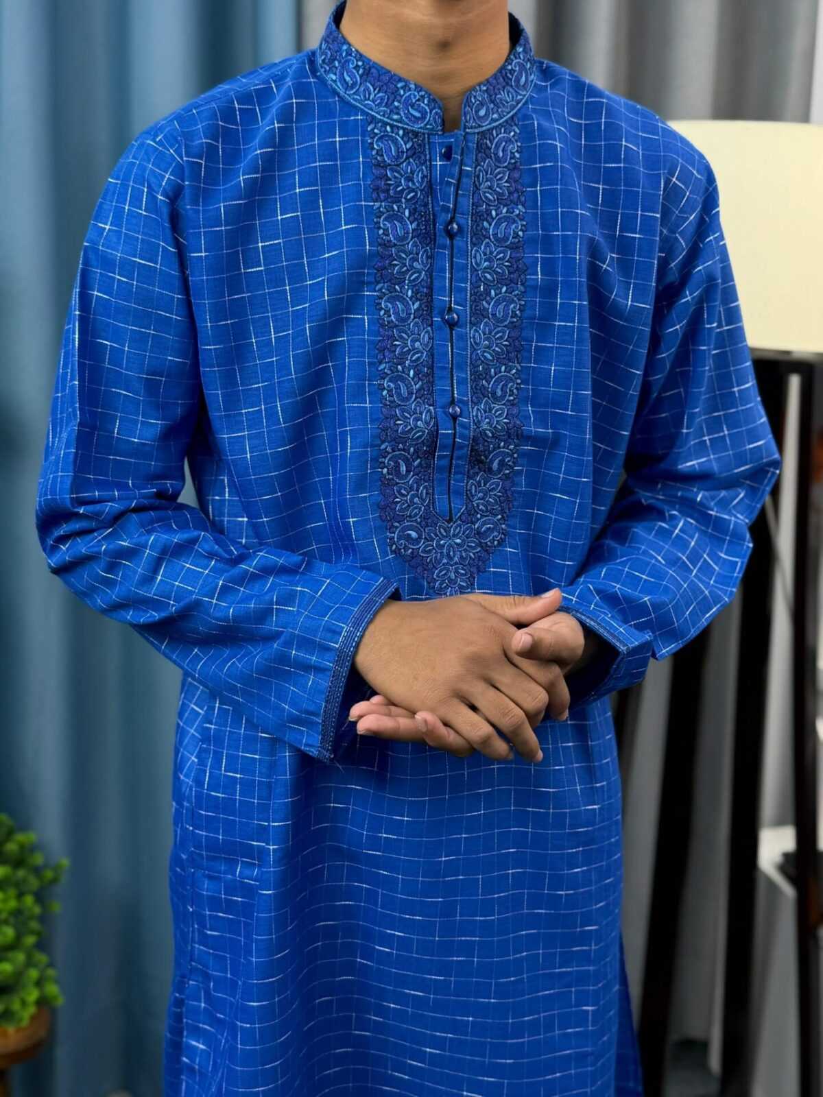 Enhance your traditional style with this elegant Embroidery Panjabi, designed to bring a perfect blend of sophistication and comfort. Made from premium quality Indian Gurka Cotton, this panjabi offers a soft texture, breathable feel, and all-day comfort.