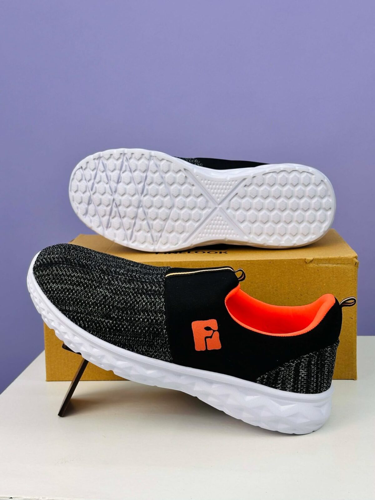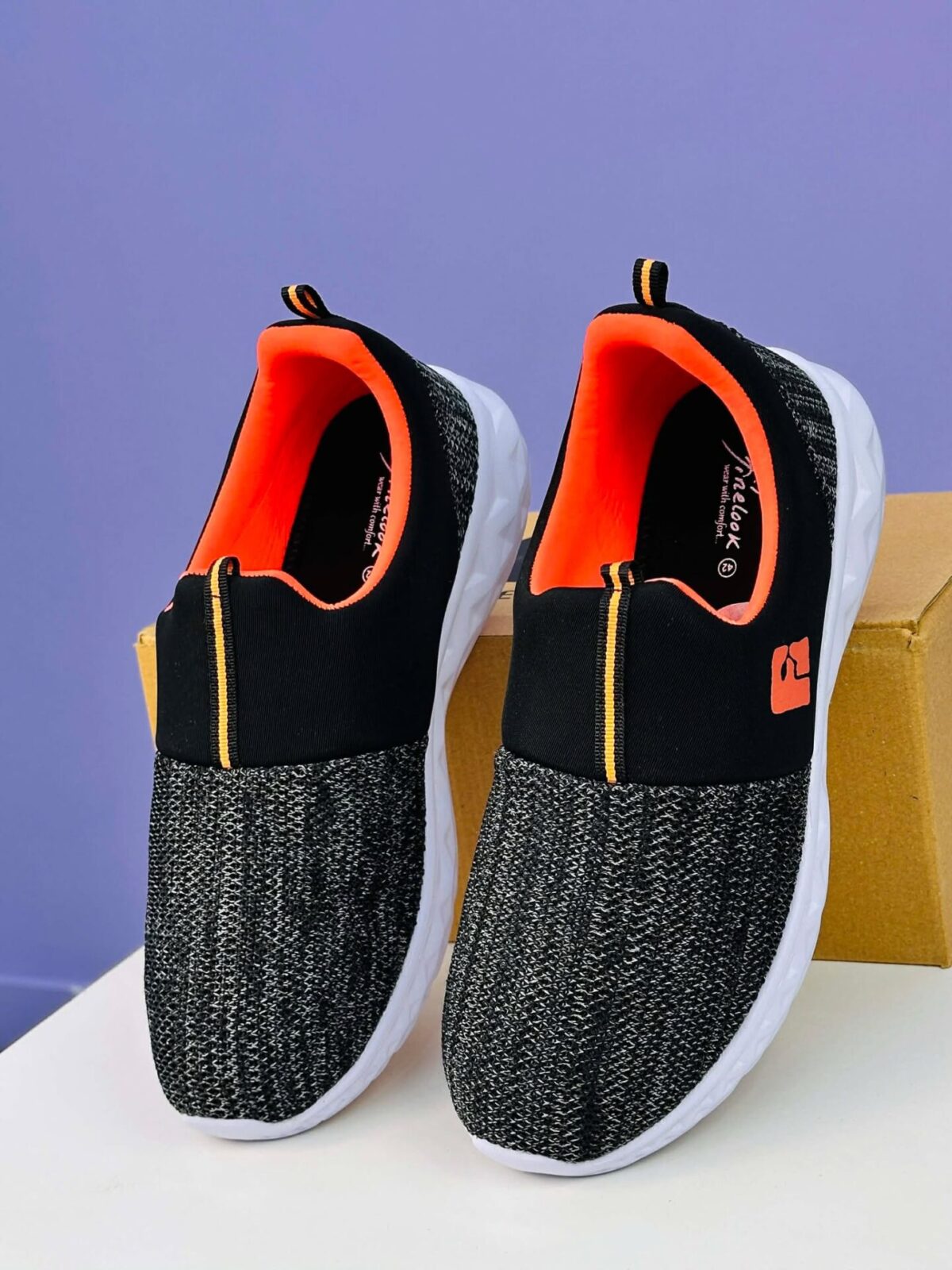 The bright orange inner lining adds a sporty pop of color, and the branded side logo enhances the modern athletic look. Built with a lightweight, cushioned midsole and a durable outsole, this shoe gives you smooth, shock-absorbing steps on any surface.