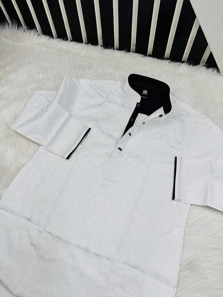 Designed with a classic straight cut and traditional collar, it reflects both style and sophistication. The natural sheen of the fabric adds a touch of refinement, while the lightweight material ensures all-day comfort, even in warmer climates.