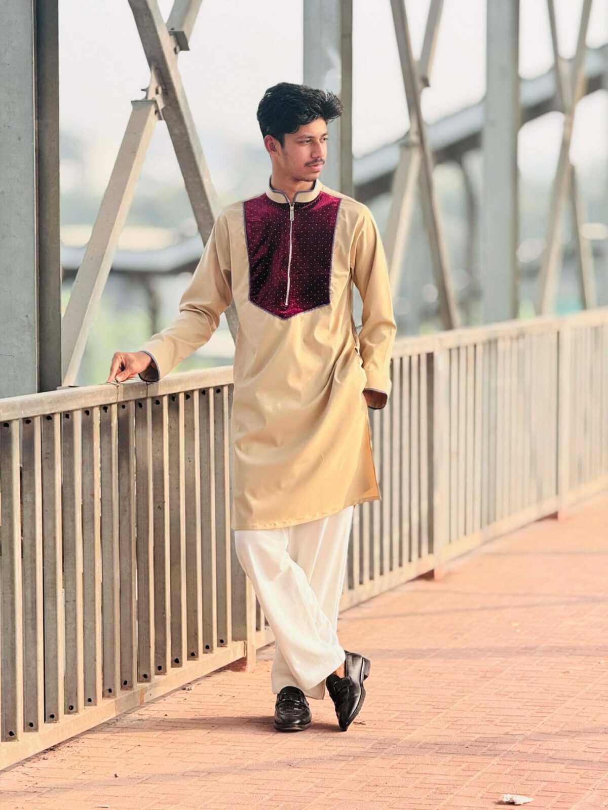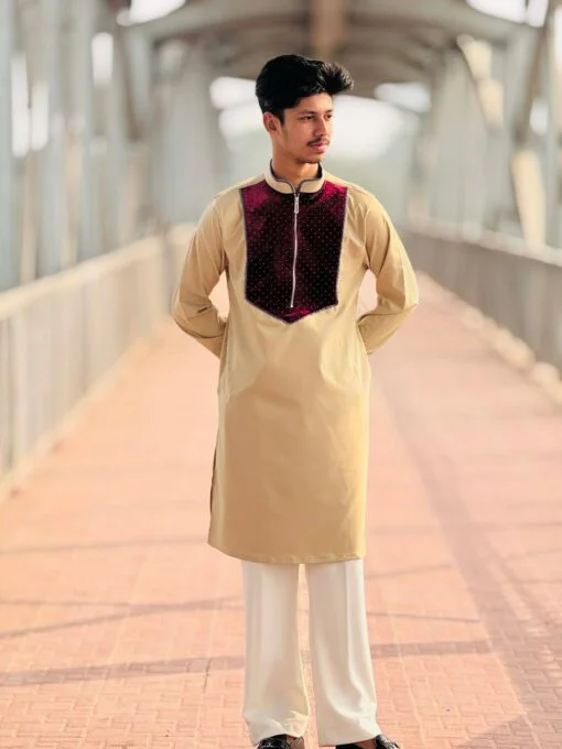 Premium Chinese Spandex Panjabi with Velvet Contrast ( PCV-1 )