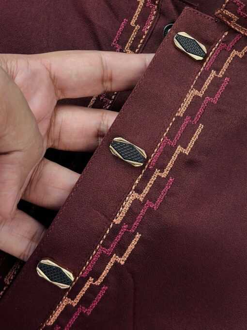 Deep maroon color with elegant contrast embroidery