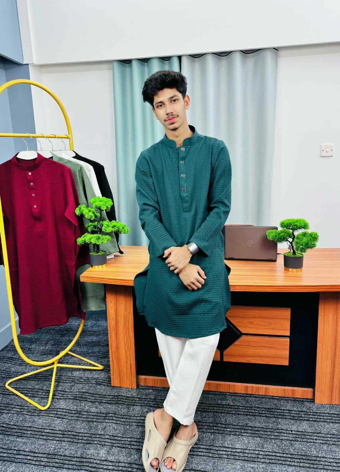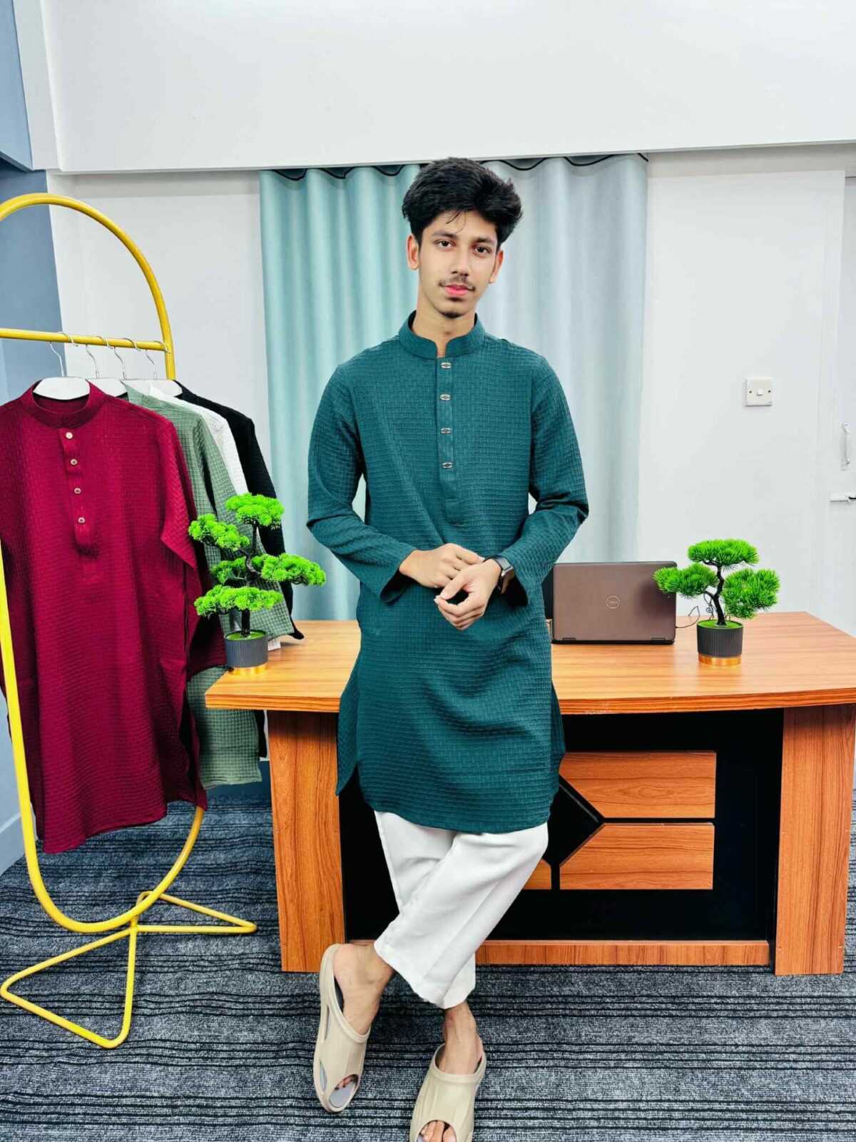 Product Name: Premium Textured Dark Teal Grean Panjabi – Fixed Plus Collection