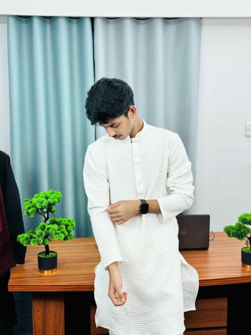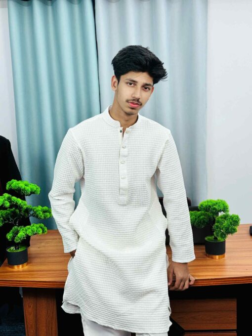Product Name: Premium Textured White Panjabi – Fixed Plus Collection