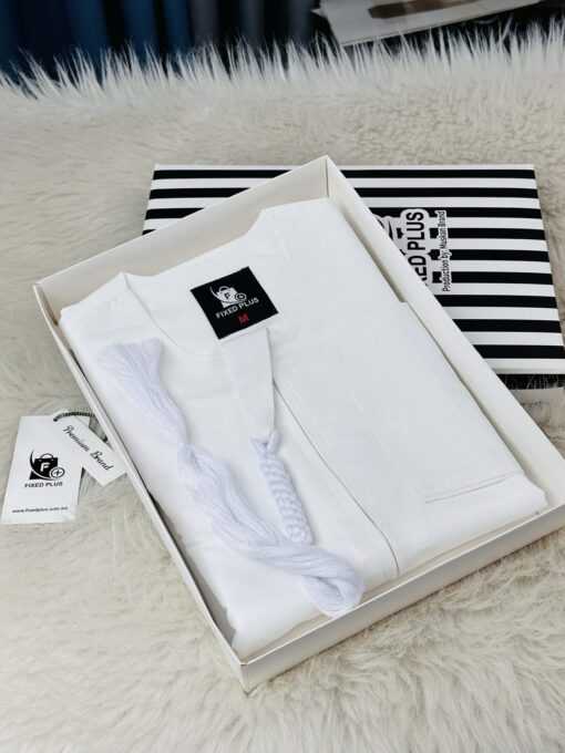 Experience timeless elegance with Fixed Plus Premium Emirati Thobe — crafted from Blended Micro Febric for a perfect balance of comfort and structure. Lightweight, wrinkle-resistant, and finished with a refined matte texture for a truly sophisticated look.