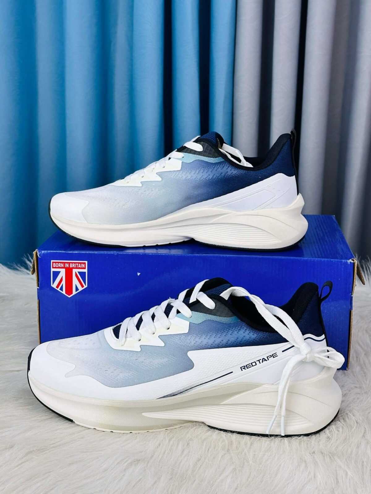 This Red Tape Velocity X variant comes with the same modern gradient mesh upper in White, Light Grey, and Navy Blue, combined with a dual-tone outsole featuring white base and black rubber grip zones. The contrast outsole adds a bold performance look while ensuring superior stability.