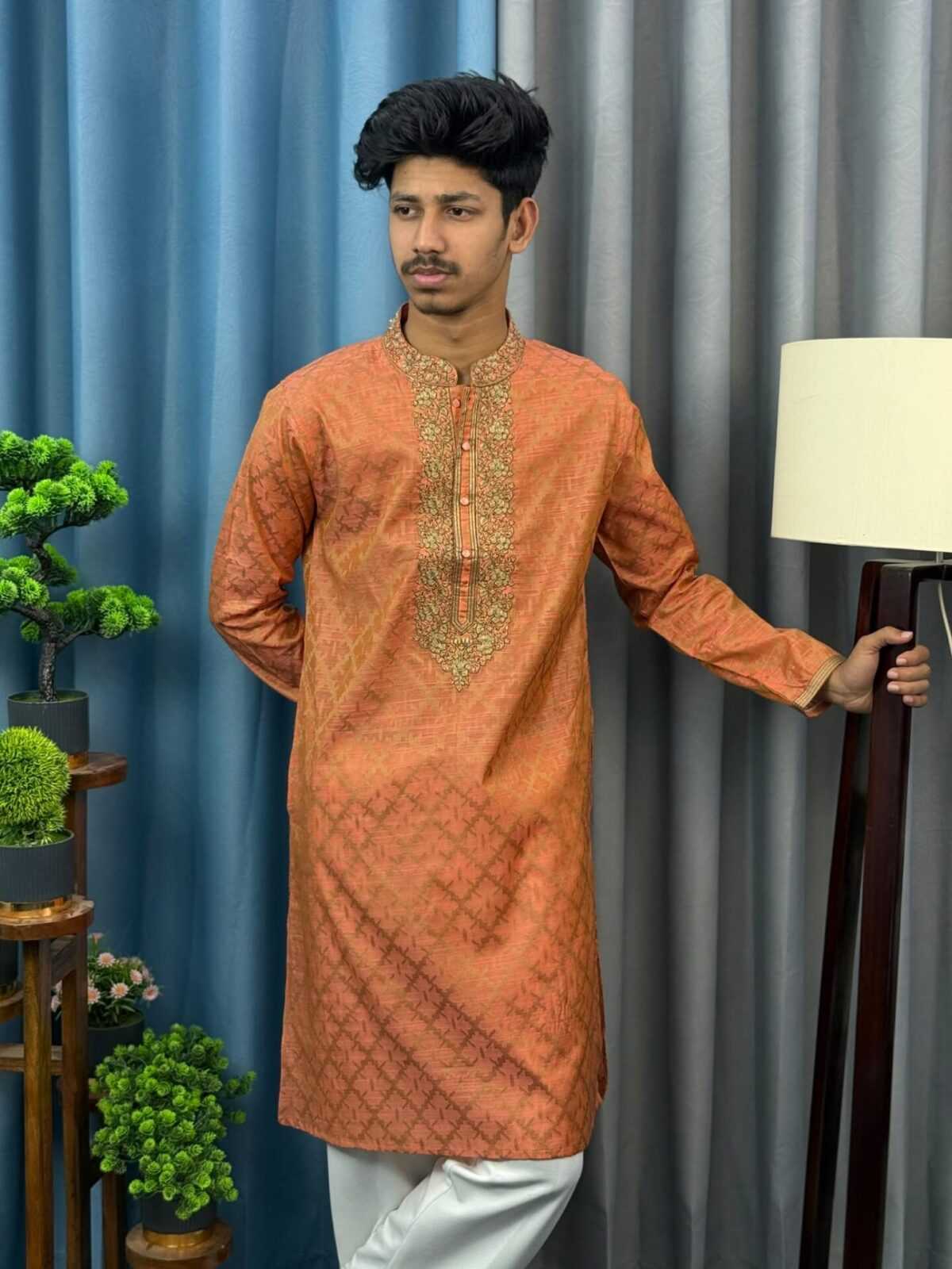 Reshmi Katan Panjabi with Catt Embroidery (RKE-1)