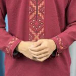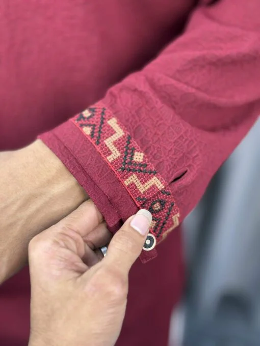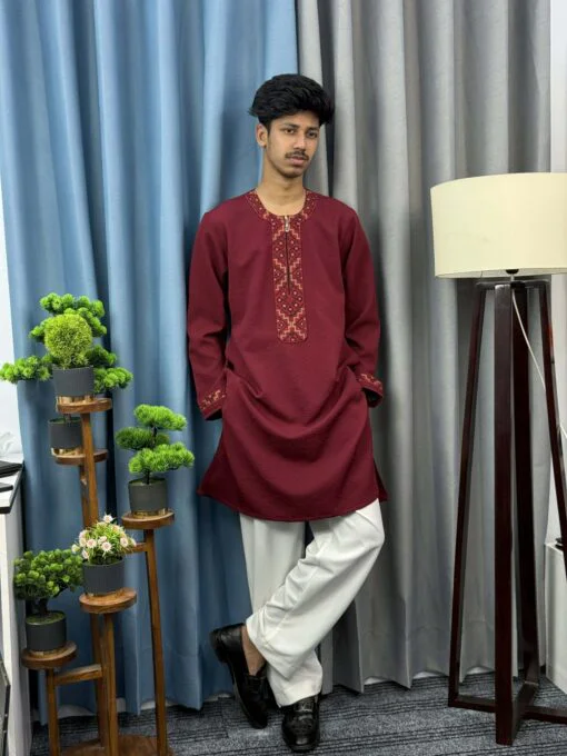 Premium Maroon Embroidered Panjabi – Popcorn Texture