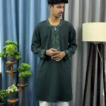 Premium Dark Green Embroidered Panjabi – Popcorn Texture