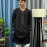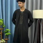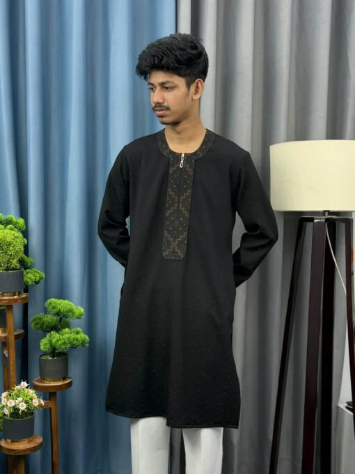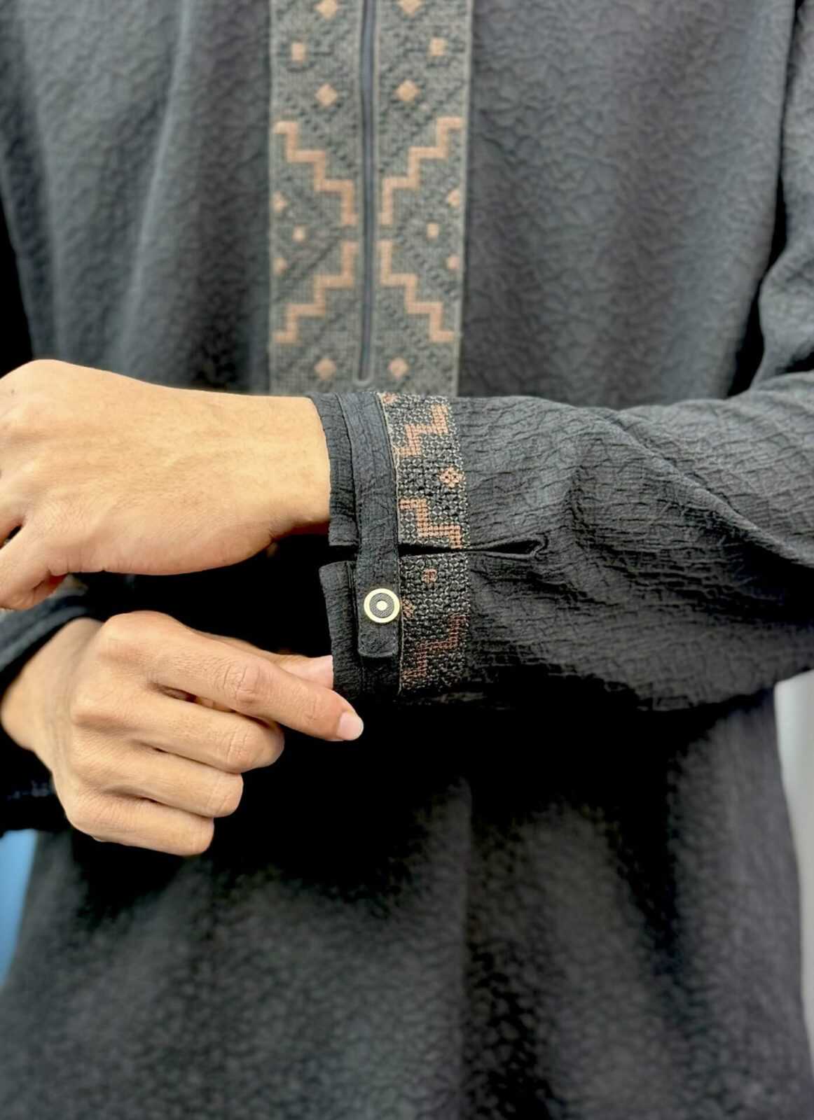 Premium Black Embroidered Panjabi – Popcorn Texture