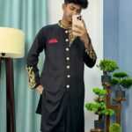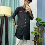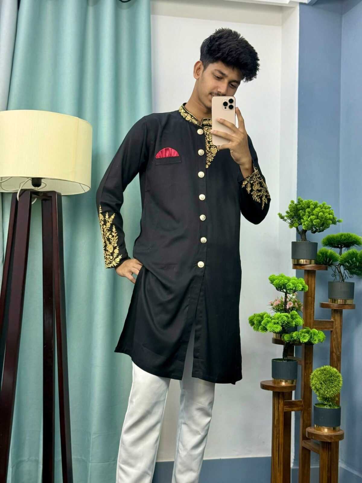 Its sherwani-style front cut and modern slim-fit tailoring provide a sleek silhouette, ensuring you stand out in any crowd. Whether it’s a wedding, cultural celebration, or festive gathering, this kurta will make you look regal and confident.