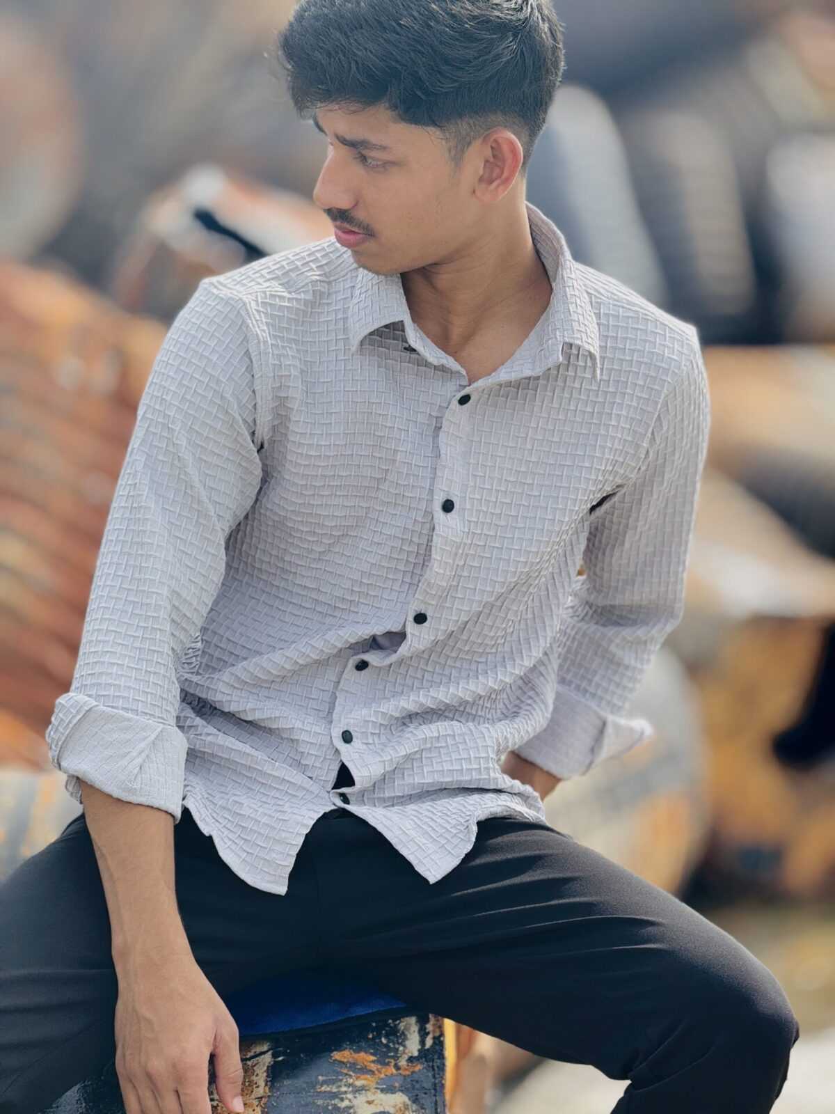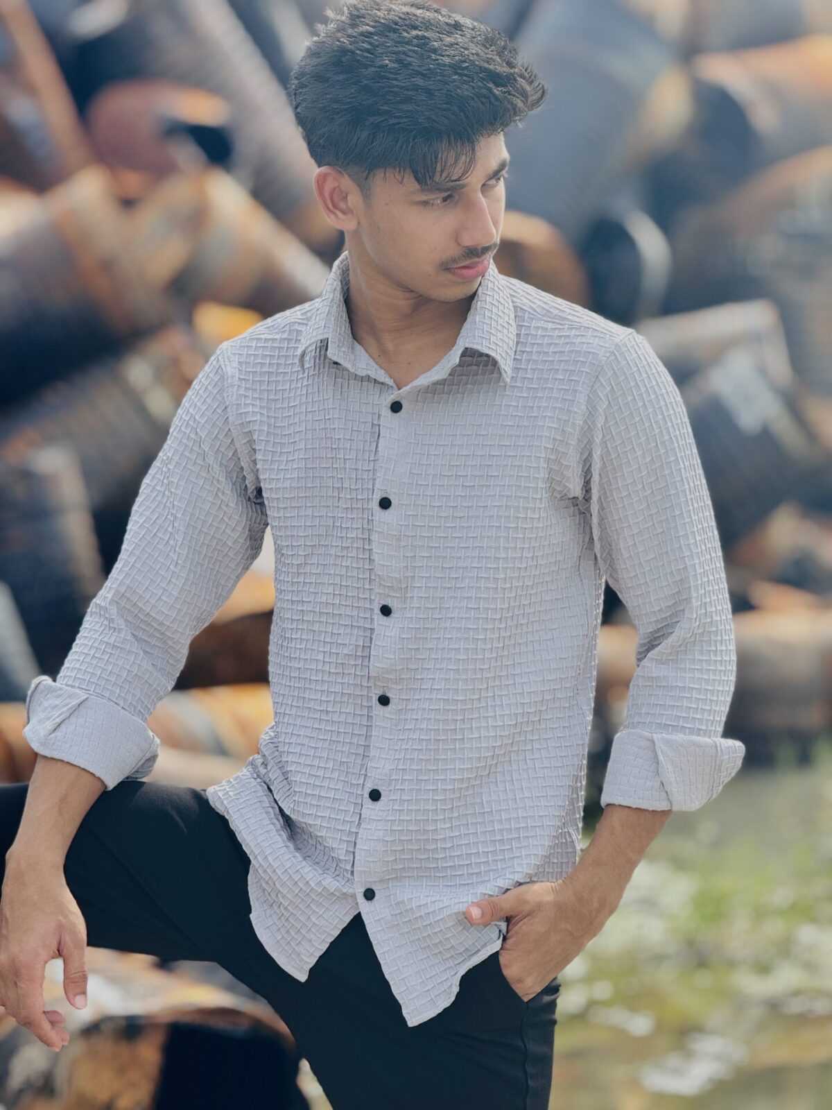 The textured surface of this shirt catches light beautifully, making it stand out without being flashy. Pair it with chinos, jeans, or tailored trousers for a polished yet relaxed vibe.
