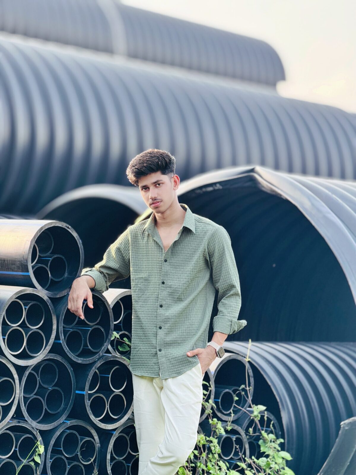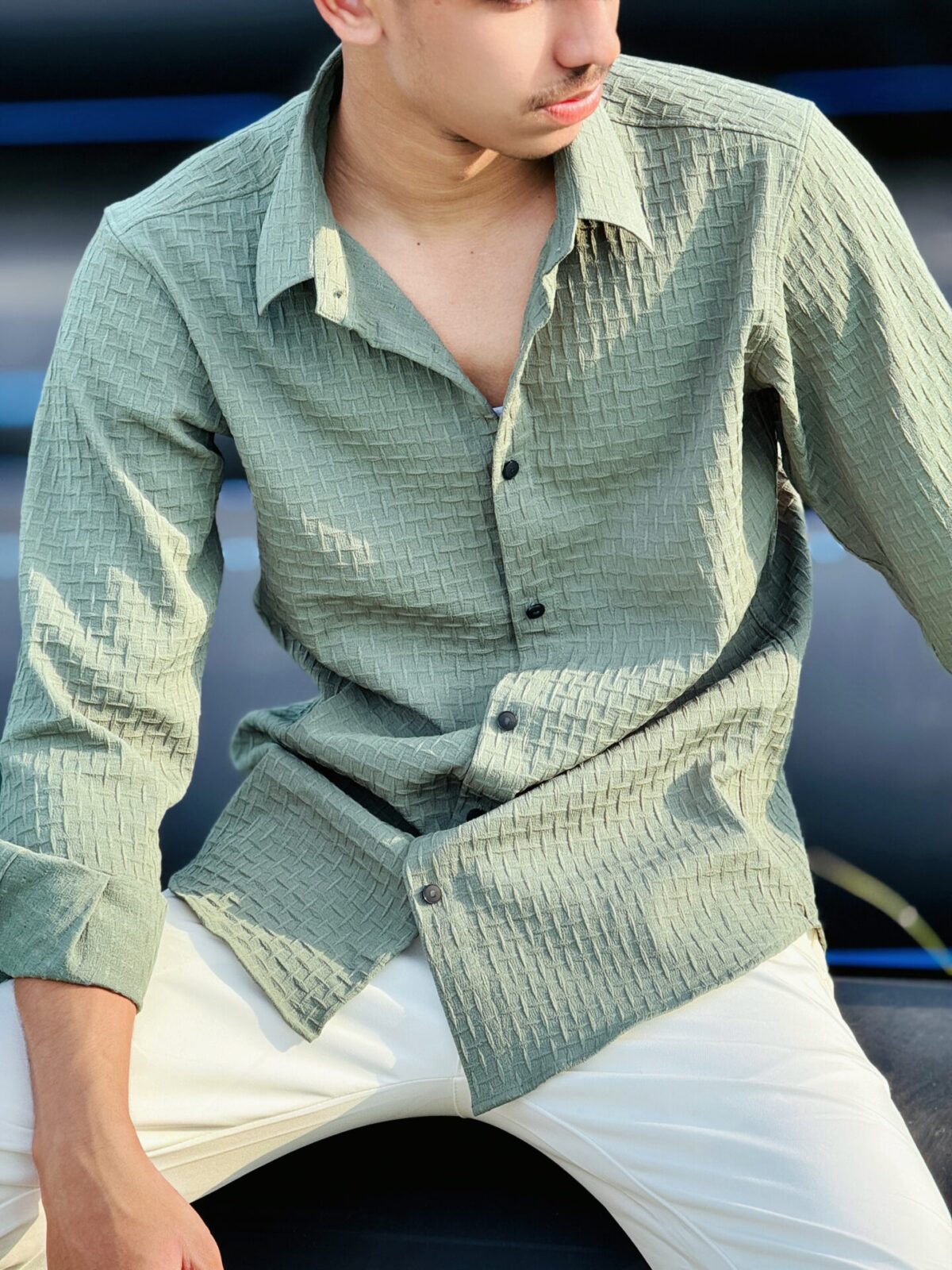 Textured Casual Shirt (Olive) (TCS-4)