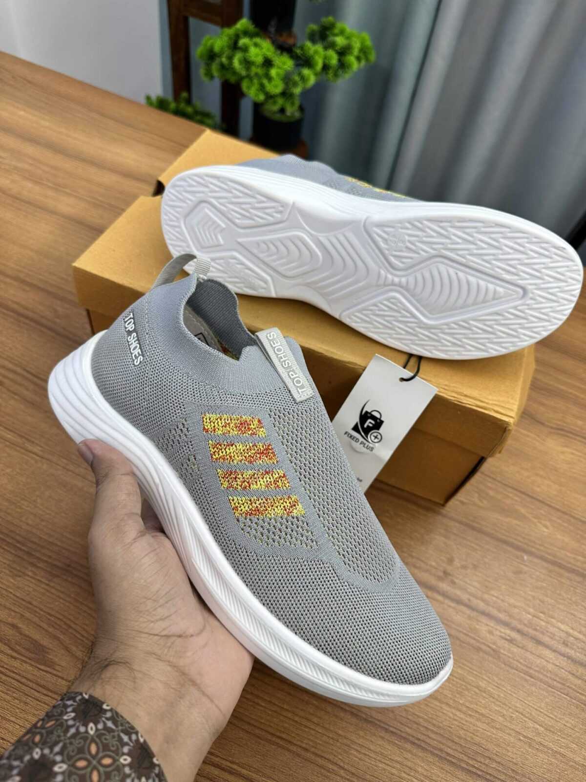 Add a sporty touch to your outfit with the Top Shoes Light Grey Stride. Designed with colorful knitted stripes, this pair offers both fashion and functionality. Lightweight, airy, and super flexible—ideal for your on-the-go lifestyle.