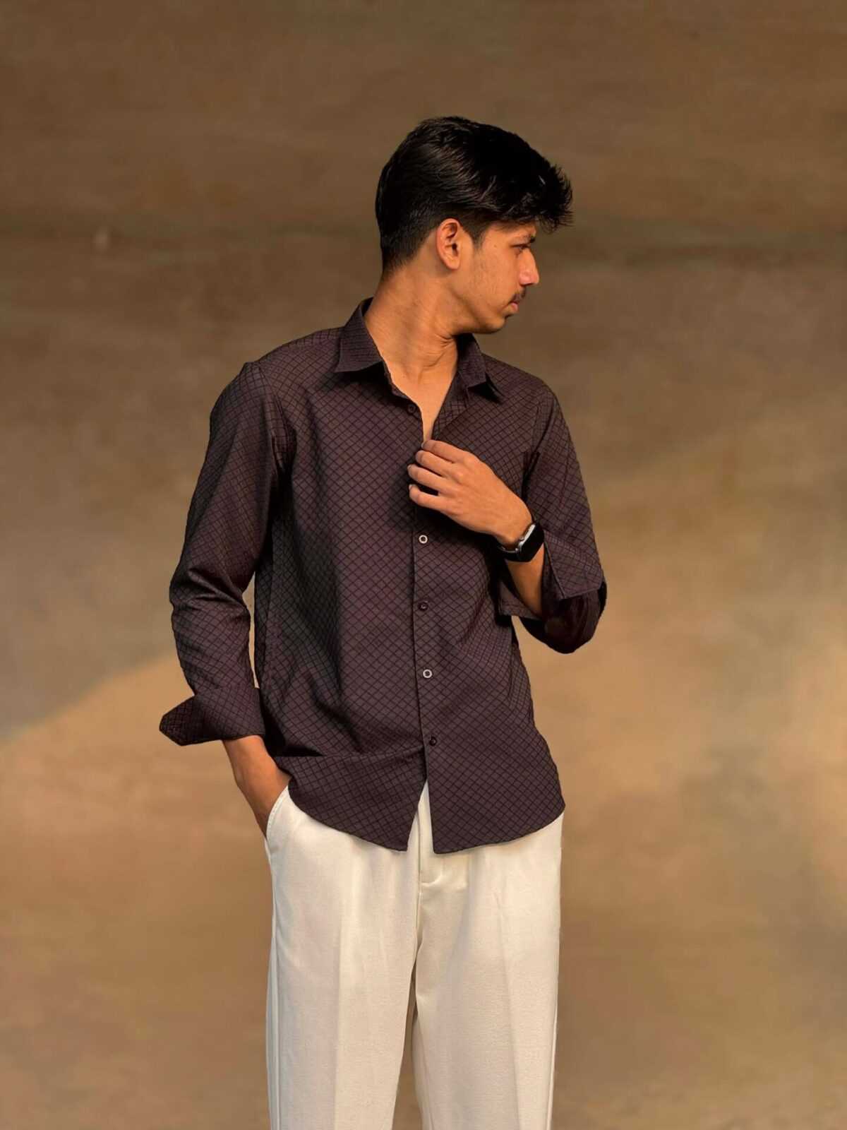 The Urban Weave Classic Shirt – Black is designed to make a confident style statement. Crafted from premium China Ambush Fabric, this shirt features a rich textured pattern that enhances its bold maroon tone. Perfect for men who want a standout yet classy look for special occasions or stylish daily wear.