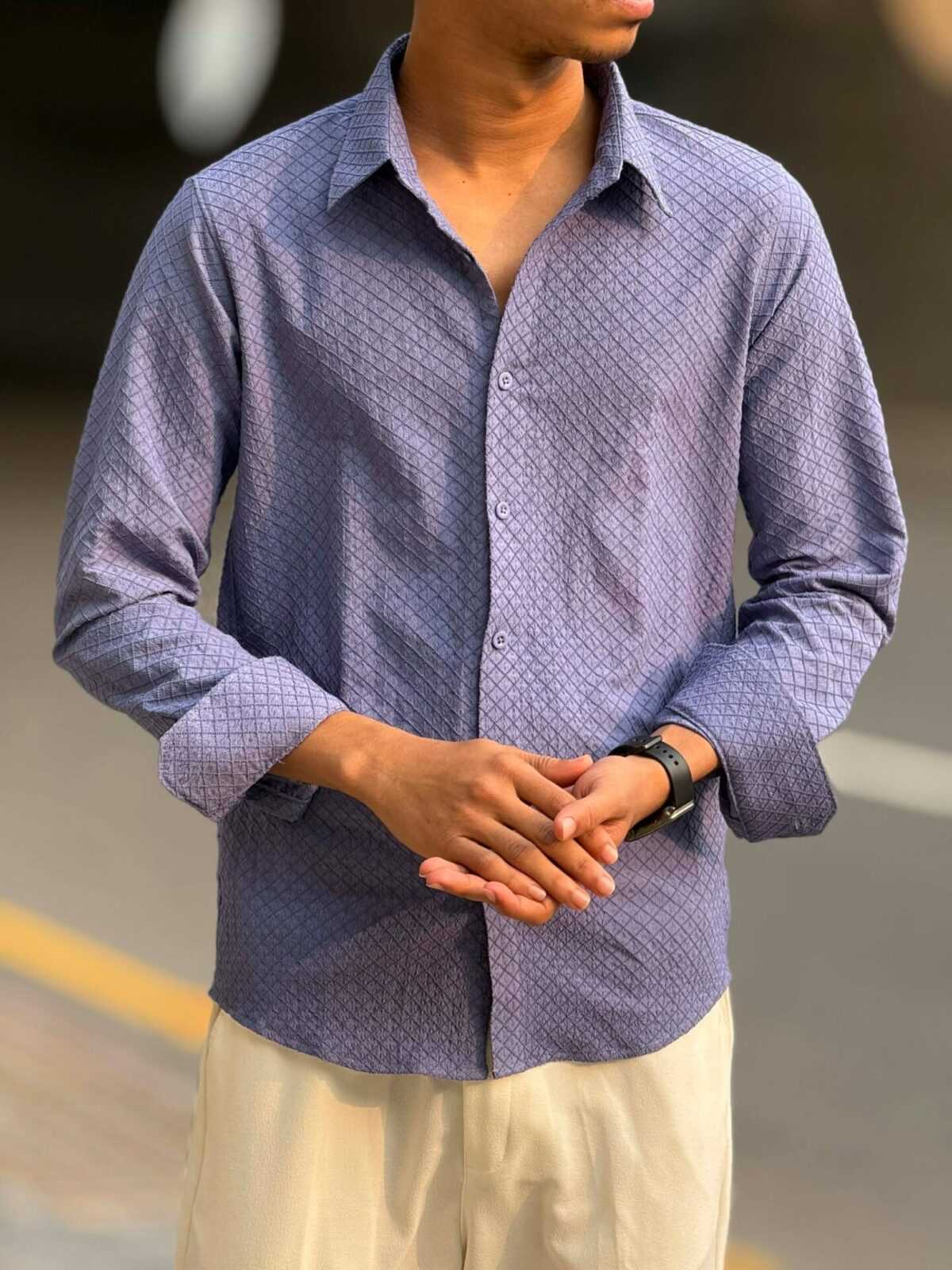 The Urban Weave Classic Shirt – Lavender brings a soft, modern elegance to your wardrobe. Crafted from premium China Ambush Fabric, this shirt features a refined diamond-textured pattern that adds subtle depth and a premium feel. The calm lavender shade offers a stylish and refreshing look, perfect for both casual and smart wear.