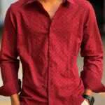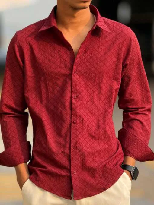 The Urban Weave Classic Shirt – Maroon Red is designed to make a confident style statement. Crafted from premium China Ambush Fabric, this shirt features a rich textured pattern that enhances its bold maroon tone. Perfect for men who want a standout yet classy look for special occasions or stylish daily wear.