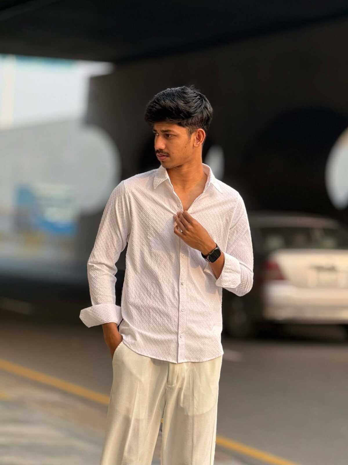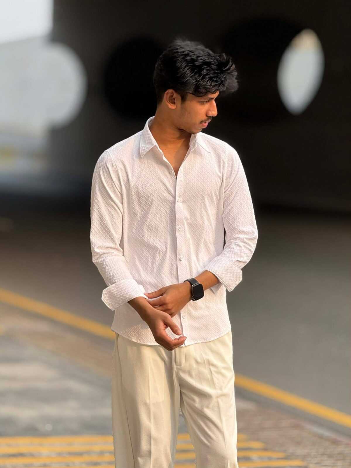 The Urban Weave Classic Shirt – Ivory Cream is designed for men who prefer a clean, elegant, and modern look. Crafted with premium China Ambush Fabric, this shirt features a subtle diamond-textured pattern that adds depth and sophistication. The light ivory tone delivers a fresh and refined appearance, making it ideal for both casual and semi-formal occasions.