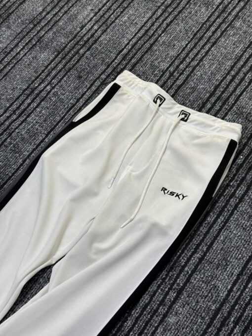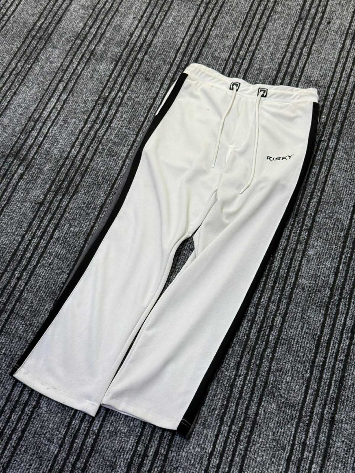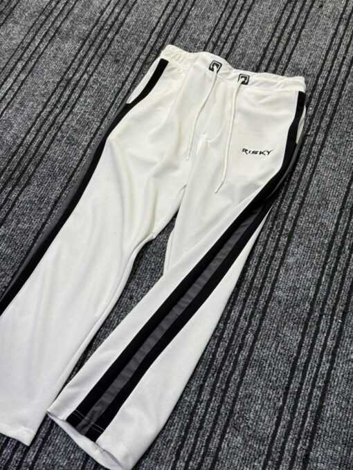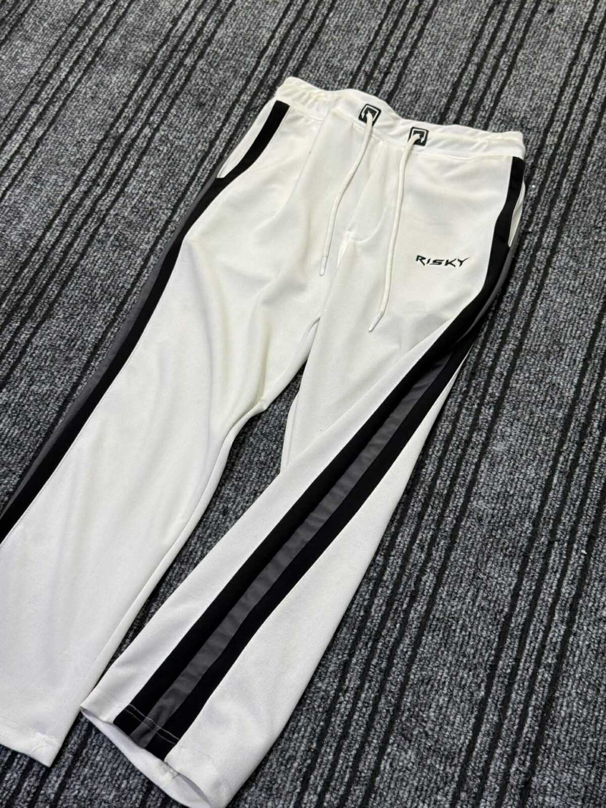 White Side-Stripe Baggy Pants (Black Stripes)